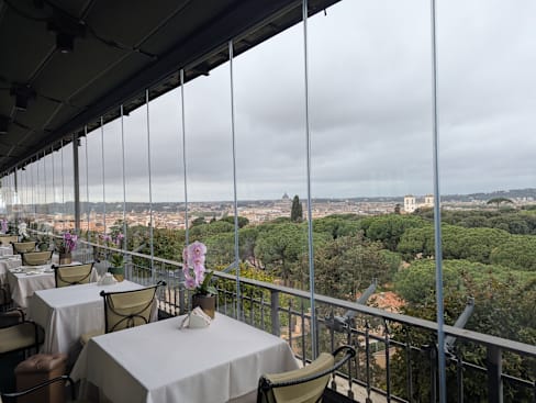 10/10Excellent service, great food and amazing sunset over Rome and the night lights from Saint Peters