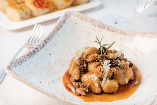 - Vellutata di ceci con baccalà al rosmarino bon bon di patate al tartufo nero pregiato