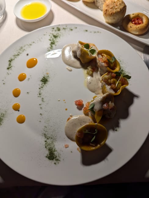 3.5/10Time is important in life. This restaurant was a complete waste of time. After visiting three amazing Michelin restaurants in Italy we were expecting an experience. This was not the case, we should have left after being seated at the worst table and the dining floor was virtually empty. The soup could have come straight from a can, you would not be able to tell the difference and the pasta dish was left uneaten. Service was sub-par and we felt like an afterthought. The main dish would be considered food but I would not recommend it to anyone. View was not a factor as we went at night. We had made reservations two months ago as it was our anniversary and there were no accommodations as it was discussed several times. Extremely disappointed. March 17 2025