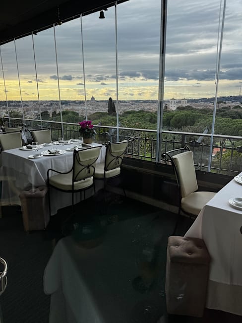 10/10Excellent service, great food and amazing sunset over Rome and the night lights from Saint Peters