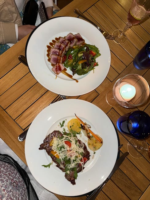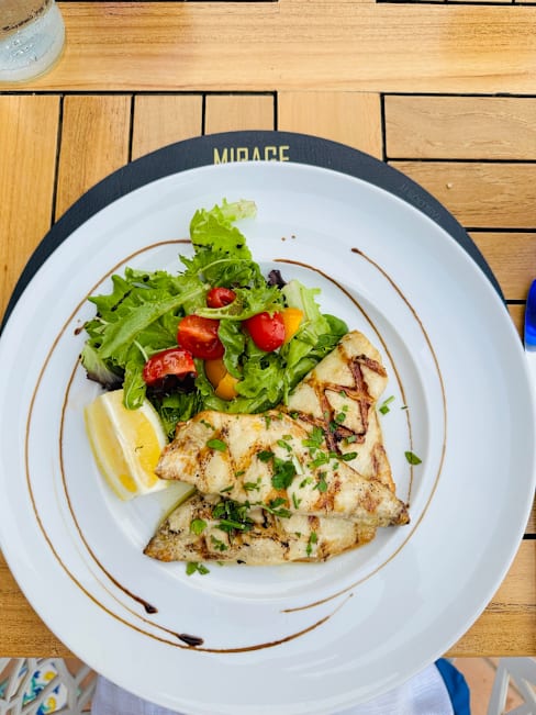 8/10The food, service and view were all great. The reason for the 3 stars for the food is that my wife felt horrible soon after eating and most of the next day. She had the dorade (fish). It tasted fine, but must have been off.