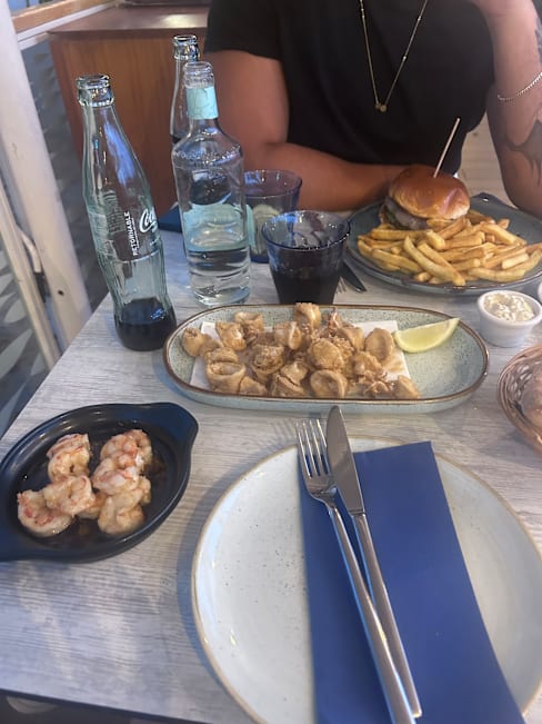 4.5/10The restaurant is located in a mall which isn’t terrible but the “water view” is of the port passage so it’s just meh. We sat on the terrace which was nice, however we only found out at the bill that there is a cost of almost €8 just to sit there. They also charged us 3 portions for bread and olives, almost €6, which we didn’t ask for and weren’t give an option to decline. This wouldn’t have bothered me except my toddler was asleep before we even got to the local and slept through the whole dinner so she never ate anything. The full Fork discount only applies to food items, drinks and desserts still had a discount but it wasn’t the 50%. I got the fish and chips, which didn’t appear to be freshly cooked. The fish was tough and warm at best and the fries were lacklustre. My husband got the mussels which were supposed to be steamed but were actually cold to the touch. The service was not fantastic either. Overall I wasn’t impressed and it wasn’t even worth eating there despite the discoun