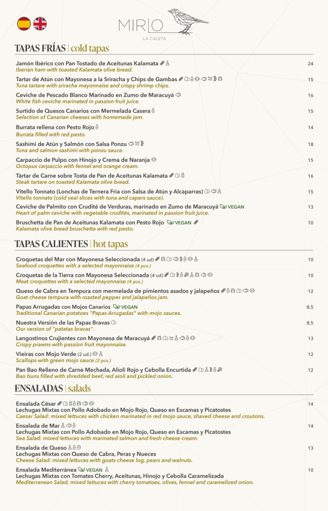 9.5/10Having had a bad experience at the nearby Troque restaurant, my wife & I were a bit apprehensive about visit to the Mirlo La Caleta. However we needn't have worried, the food was very good (apart from the cold mash potatoes my wife had with her steak), the service was prompt and attentive ; with myself being gluten free the waiter was helpful in explaining the menu options for me. I had the hamburger with their homemade chips which was excellent. Overall we had a very positive dining experience and would have no hesitation in coming back again if we were to return to Tenerife.