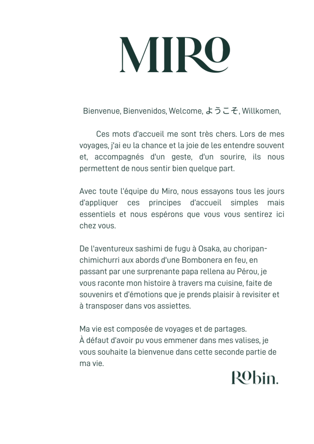 Bonjour Daniel, Un grand merci pour votre retour ! 😊 Au plaisir de vous servir à nouveau pour une nouvelle expérience gourmande ! À très vite, L’équipe du restaurant Miro