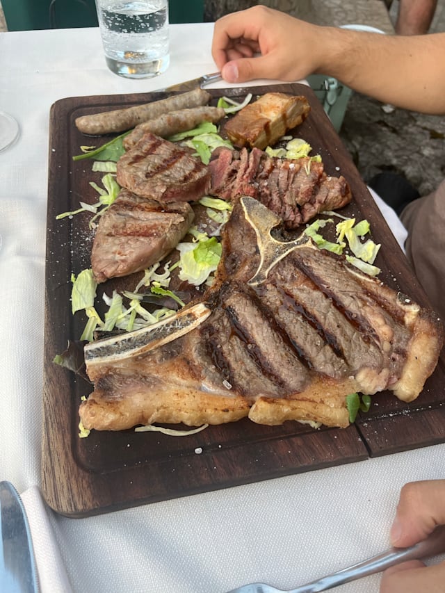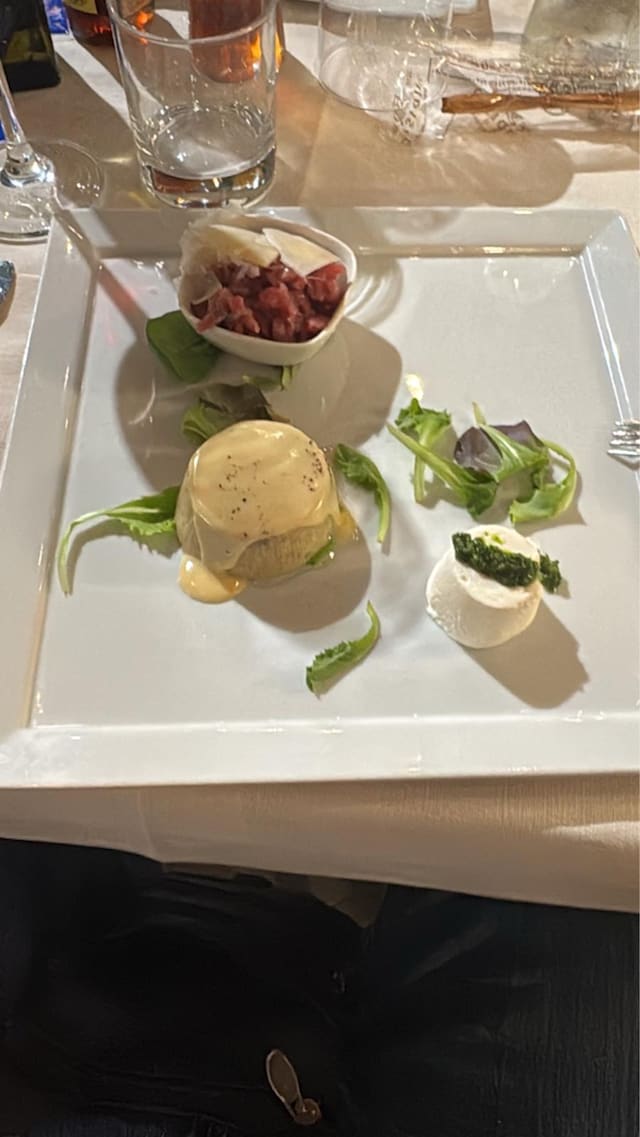 Servita con il frutto del cappero (cucunci), scaglie di parmigiano 24 mesi e gocce di fonduta locali