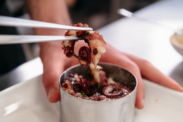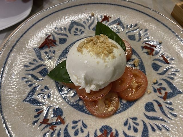 Polpo grigliato su crema di fave / capocollo mac. petracca con ricotta / calamari su peperoni grigliati / carpaccio di tonno con cipolla caramellata/ burrata con pomodori secchi / parmigianina