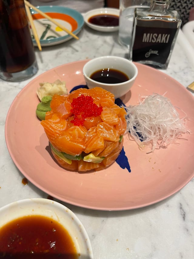 7.5/10while the food was nice and the atmosphere was good the wai1t staff seemed booked. we had ordered 2 drinks t1hat did not show up until the end of our meal after I asked for them again. It was also a small table, as most places are, and they did not come to take away smaller plates we had finished. We ended up stacking plates to make room for our shared sushi plater.
