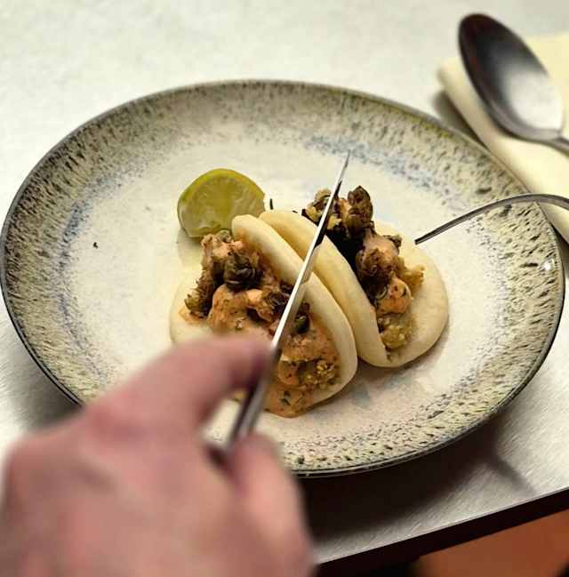 - Bao d'huîtres frites, rémoulade au gochujang, câpres