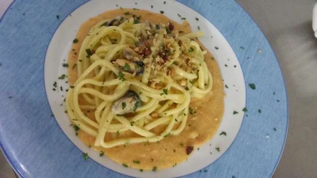 - Casarecce, carciofi, salsiccia, noci, formaggio.