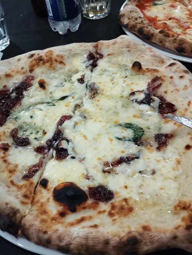 - Gorgonzola, fior di latte e cipolle di tropea caramellate.