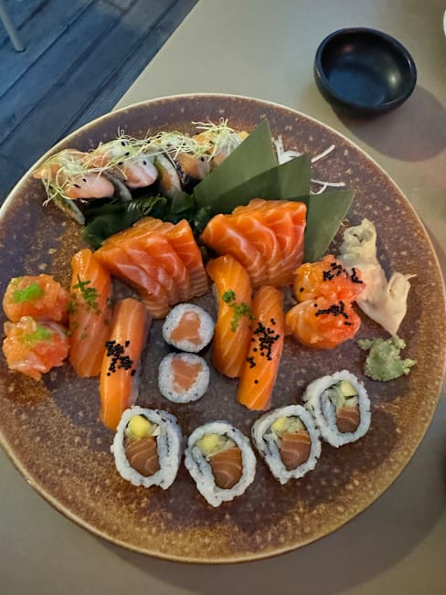 8/10While the starters were excellent and the cocktails were top-notch, the sushi itself was disappointing. The fish, including the salmon, was dry and lacked the rich, fatty texture expected in quality sushi. The hosomaki was not well-prepared, which affected the overall experience. I highly recommend improving the sushi quality or exploring better recipes for the combo menu. On a positive note, the service was fantastic—10/10 for friendliness and attentiveness!