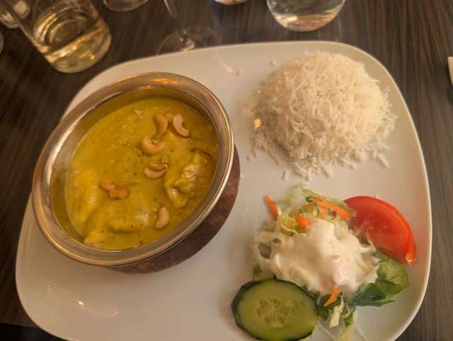 8/10The starter was a bit disappointing but the main dishes were packed with flavour and the naan was outstanding. The place could definitely benefit from some music for a bit more ambiance but it was still pleasant. The staff were also very friendly and helpful with recommendations and information, I'll definitely be going back.