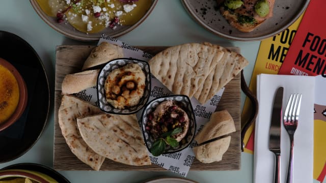 Scarlett's huisgemaakte focaccia & flatbread met twee soorten tapenade van het seizoen/ Scarlett's homemade focaccia & flatbread with two types of seasonal tapenade