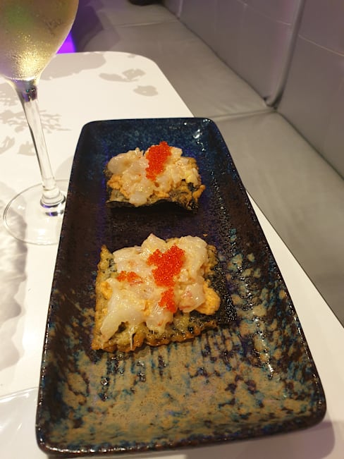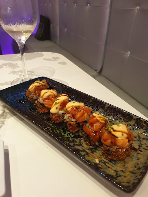8/10The food was good (fantastic tempura veggies), the waitress was super friendly, kind and funny, but not for this job. Spending 20 minutes talking to clients at one table while we waited for our food which was already standing on the serving table..????????♀️ but her personality was super bubbly and sweet. I can see on the other hand how this behaviour could ruin someone's experience. There was no available vegan desert because their fridge broke (which was great *lack of desert, not broken fridge????, considering we definitely overate ????), but having a full vegan menu and no plant based milk for a coffee is strange.. Overall good experience and will come back when have sushi craving. Plant based milk and some vegan desert options would be a plus :)