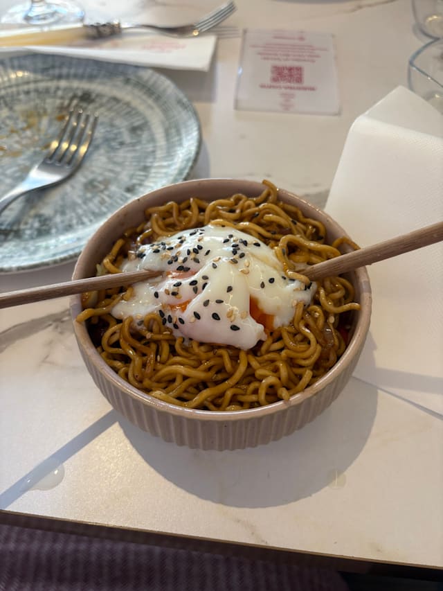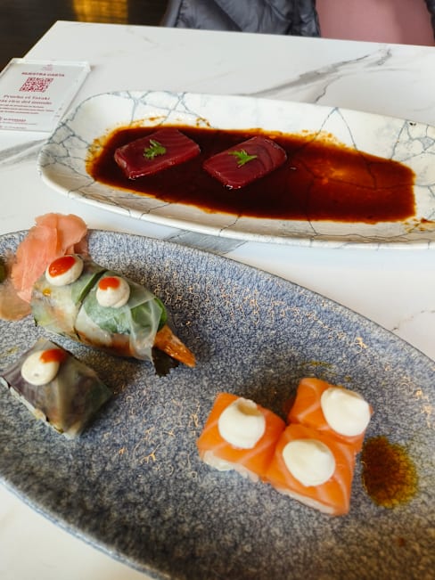 8.5/10As it was early, we were the only people in the restaurant. Food was very good, very large portions. Using the QR code to access the menu was a bit problematic as I didn't have a strong signal in the restaurant, and being an English speaker in a Spanish city ordering Japanese food did throw up a few interesting translations. My wife's food apparently included "feather" which we took to be chicken or duck.