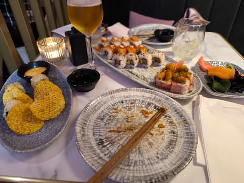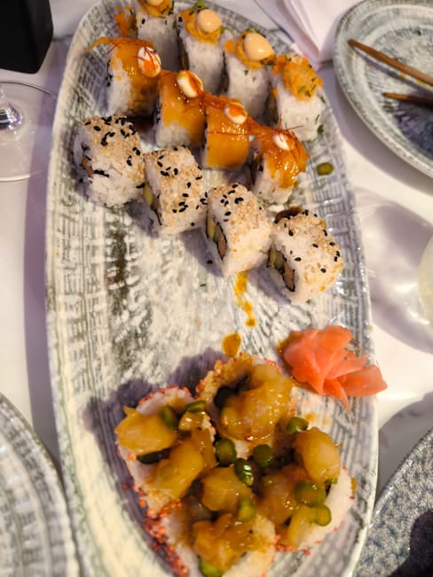 5.5/10The sushi had way more rice than it had fish. they use mayo instead of cream cheese in some dishes, which cancels the fish flavor. The salmon was okay, but the tuna was far from fresh (it was brown). The price-quality ratio was very poor, since it is an average-expensive place for a not so good quality. It gives a very bad impression of a such well evaluated establishment, for someone who is used to eat good quality and fresh sushi in cheaper places - almost 10€ for 6 pieces that had tons of rice and a lot of pink mayo on top is not desirable.