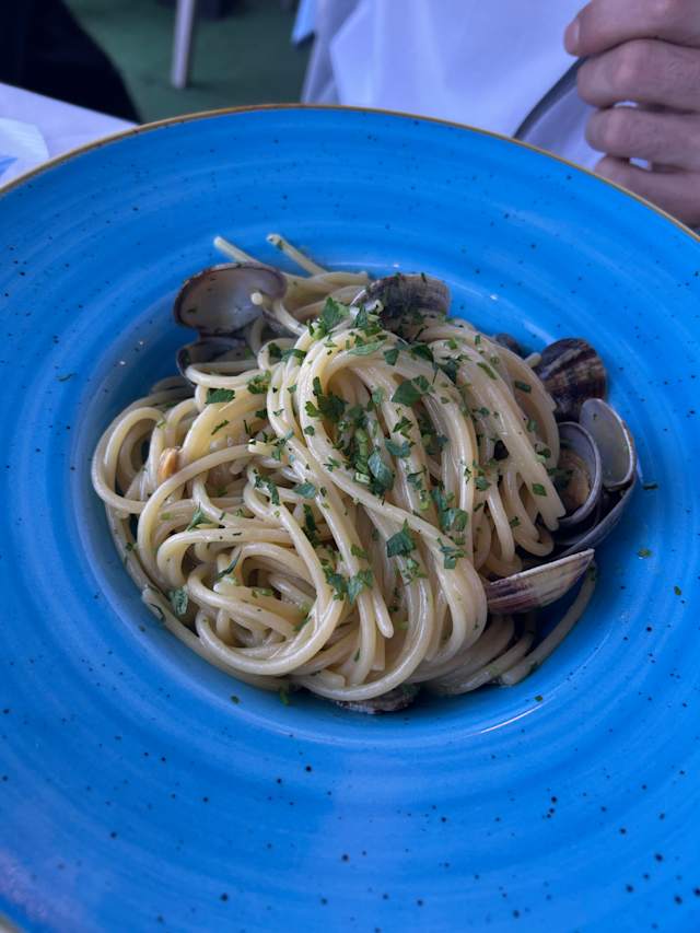 10/10Beautiful atmosphere by the sea. Nice food, we had a focaccia, spaghetti with clams, steak fillet, water and wine and with all discount it was a very reasonable price (45 quid).