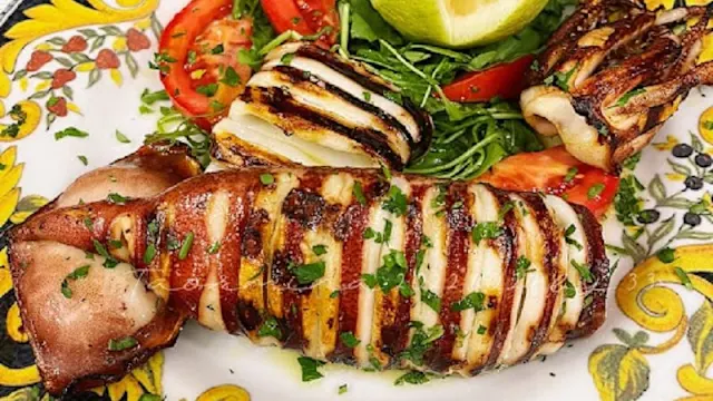 - Pesce spada, calamaro, filetto di branzino, gamberone alla griglia