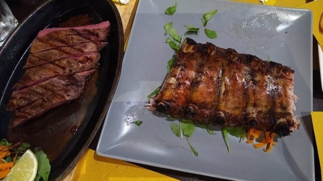 Tagliata di manzo, doppia salsiccia, costolette di maiale, pollo alla griglia e due contorni a scelta