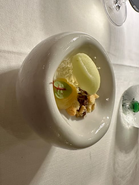 6/10Food is really underwhelming. They try hard to impress but nothing really tasted great. Also doing lamb brains as one of the lamb preparations is just unnecessary. It didn’t taste good and is just a weird dish to serve. Table service was very mixed. Didn’t offer us to drinks on time we sat there with empty glasses for like 15 mins. The entire dinner our table was full of bread crumbs and other stuff they didn’t clean. All of this was 700 euros and not worth it