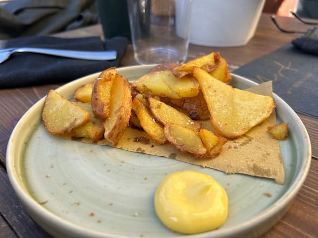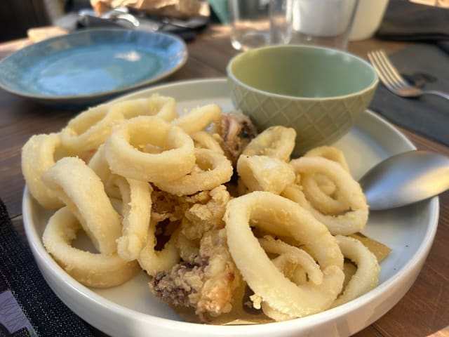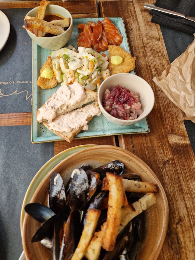 8.5/10Stumbled upon this gem thanks to The Fork's nifty discount and oh boy, was it a treat! Walking into Mit Bistrot, the vibe hit us right away—cool, moody greys teamed up with those snazzy teal chairs. Started off with a Supplí that was all kinds of yum. My buddy's carbonara? Spot-on and super tasty, he says. Now, my gnocchi with scampi were tasty for sure, but I was kinda playing 'Where's Waldo?' with the scampi. Wish there had been more because they were delish. Pro tip for the chef: tossing in a few raw scampi could really take this dish up a notch. The grilled Seppia, total showstopper! That dish alone's worth coming back for. Ended on a sweet note with a Raffaello—pretty good, even if it wasn't totally my jam. Props to the crew for keeping us hydrated and happy with drinks and bread that just kept coming. The staff nailed it—friendly and on the ball, making us feel right at home. And the bill? A cool 70€ after the discount. Total score for a night of fab food in a killer spot.