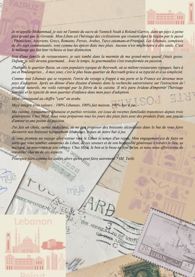 Merci pour votre retour et pour la belle note que vous nous avez attribuée. Nous comprenons que le rapport qualité-prix puisse être un point sensible, et nous faisons de notre mieux pour proposer des plats maison, généreux, élaborés avec des produits frais et dans le respect de la tradition libanaise. La qualité a effectivement un coût, mais nous espérons que chaque bouchée et chaque attention justifient l’expérience. Au plaisir de vous accueillir à nouveau chez Miyé !