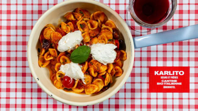 - Sauce tomate, légumes grillés et marinés, burrata, basilic