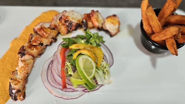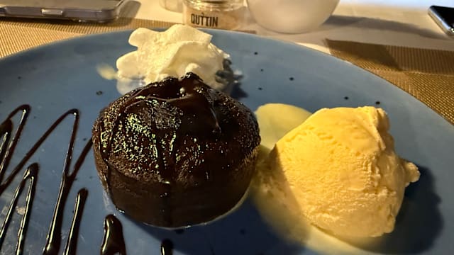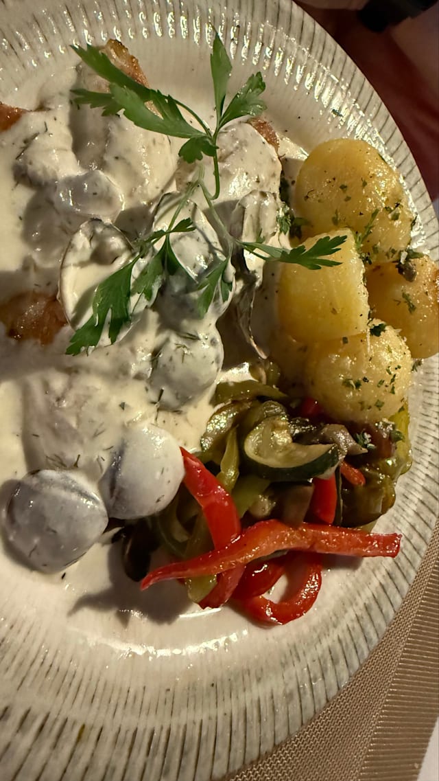 7.5/10Lovely, warm evening so seated outside. Spoiled by smokers however when we asked if it was "allowed", the staff asked them not to.