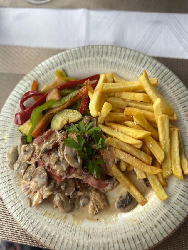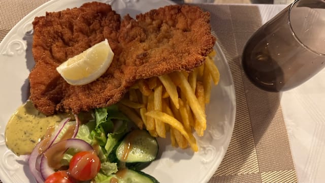 7/10On arrival I told them I had booked lunch through the Falk app. I was told to find a seat. 10 minutes later I was given a menu and at this point I asked for the dirty table to be cleaned. I had a starter, a salad and a main course. The food is excellent, the service is diabolical. When waiters were in view they made no attempt to check if all was ok. They appeared only interested in their pay cheque. The main course I ordered was steak and veal arrived! I sent it back to the kitchen and waited a further 20 minutes for the steak to arrive. On receiving my bill and checking through it I found the 30% discount had not been applied. I then waited a further 10 minutes for the amended bill to arrive. I found alcoholic drinks expensive. To sum up, the food is very good the service terrible.