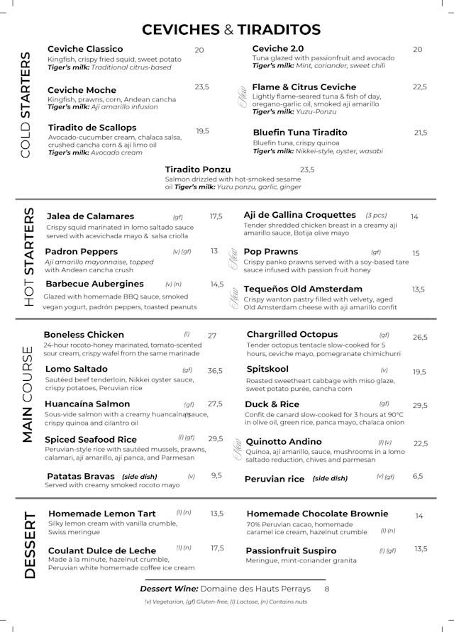 8.5/10Good service, starters were very nice. I'm missing some more Peruvian main courses. Desserts: 1st one was perfect, 2nd one not so special.