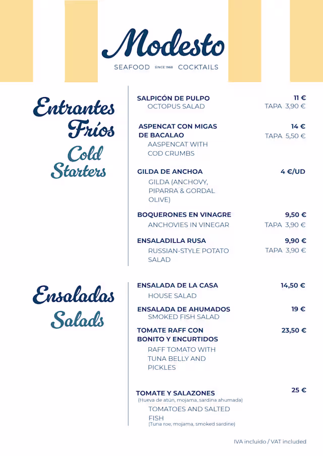 Modesto Seafood & Cocktails 1968 is identified as offering spanish cuisine.