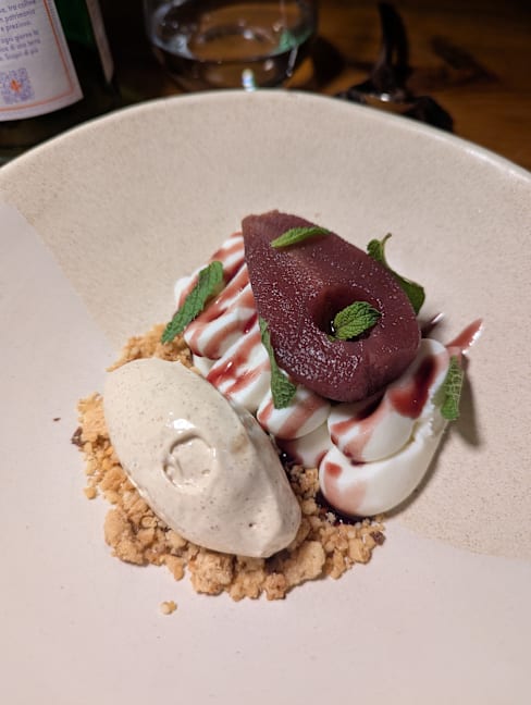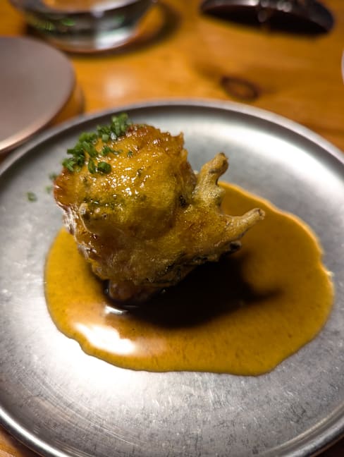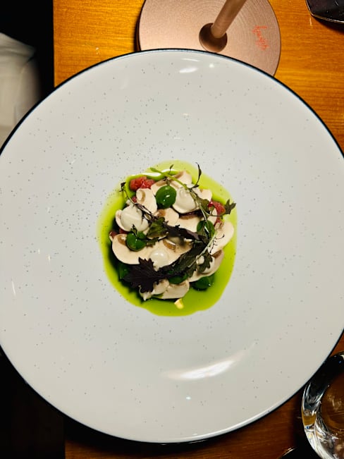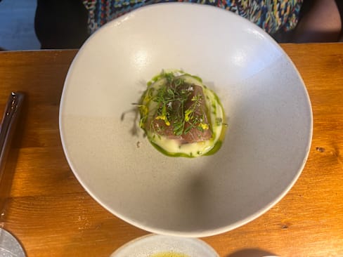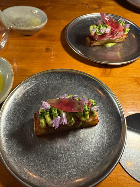9.5/10The cuisine is delicate and exceptionally delicious. It is strongly influenced by Japanese cuisine, skillfully incorporating miso and soy sauce. Truly a first-class taste. Unfortunately, more than half of the seating is outdoors, and located on the sidewalk. We were seated there as well, but it was a cold day, and a group of waiting customers was quite noisy, making it hard to relax. Given how outstanding the food was, it felt like a shame.
