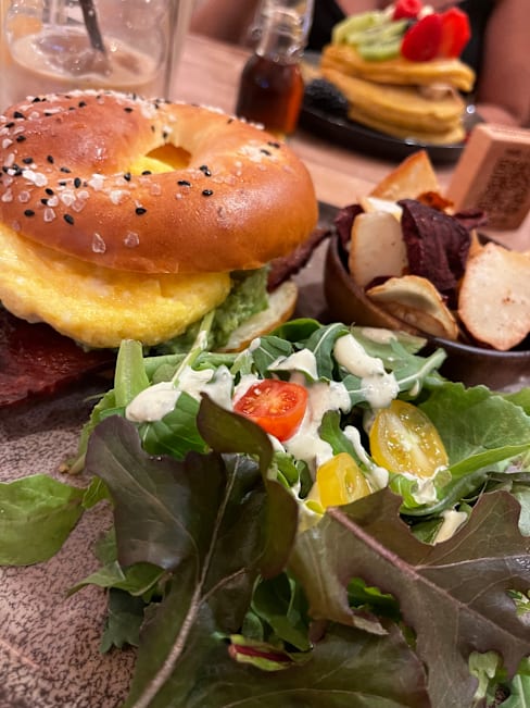 9.5/10Great service, good menu, amazing veggie burger and cheese empanadas. And the showstopper was the pistachio Meuille Feuille. The only negative was a bunch of thoughtless people at the next table having a long and loud conversation with various on their mobile phones with the speaker switched to max🙄 this sort of thing is making it harder to find a quiet spot to enjoy good food and drink with a nice ambience. Suggest restaurants start thinking about codes of conduct for this behaviour as not everyone is interested in your conversation, people!