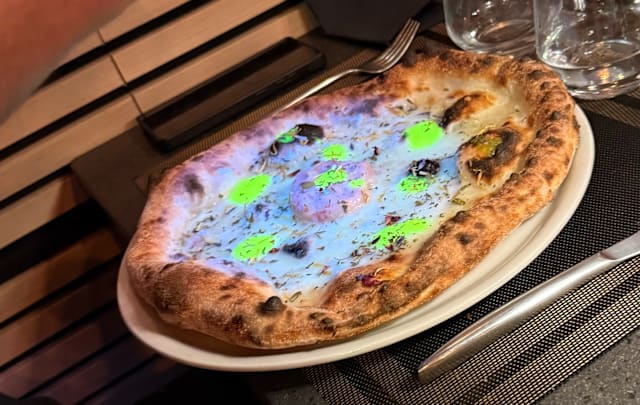 9.5/10Firstly let me say that I am not a pizza fan and rarely find eating pizza a pleasant experience: too much fat and two much bread for my taste. It is not the case of this pizzaria. The base is thin and crisp, original combinations of vegetables and some molecular kitchen ingredients make their pizzas very tasty and pleasant to look at and to eat.