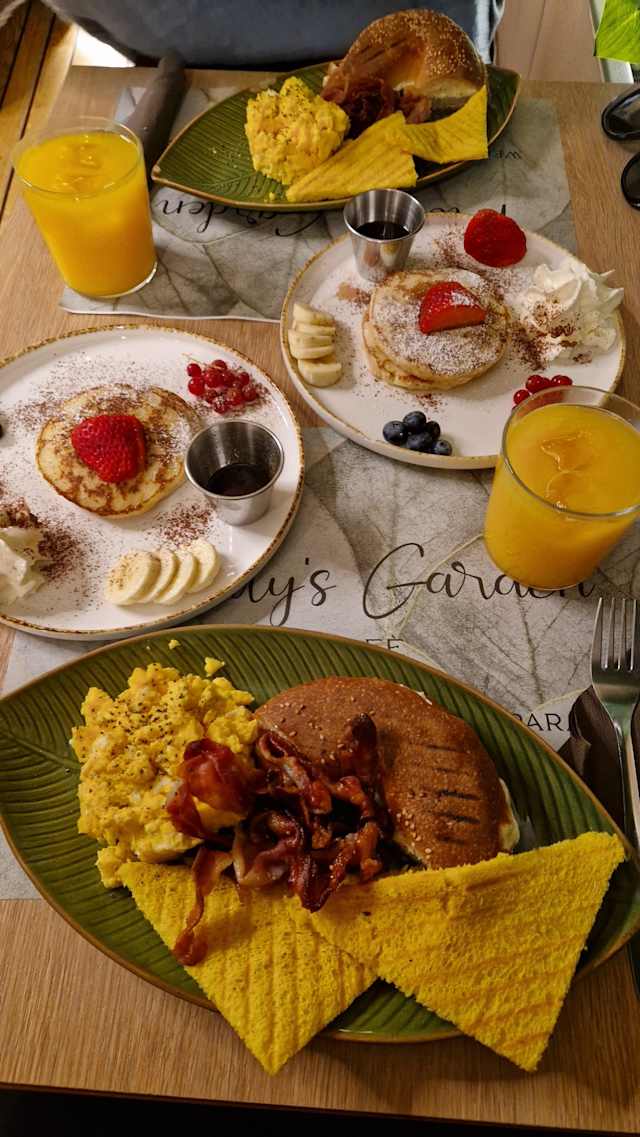 - Pancake bacon & eggs