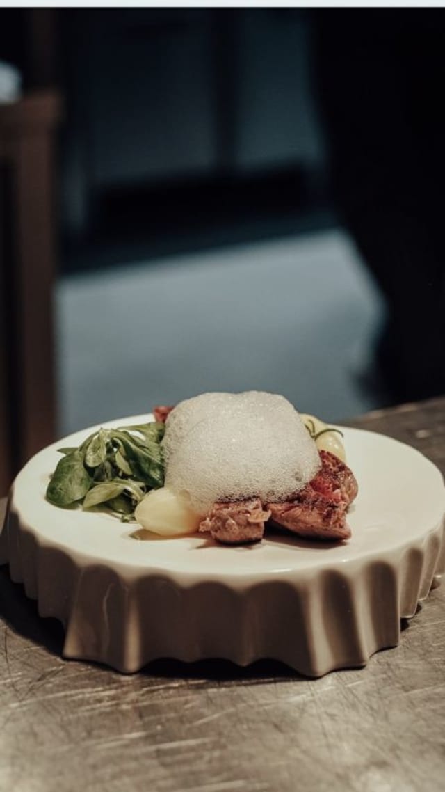 Tortello fondente,burro chiarificato,spuma di parmigiano e tartufo