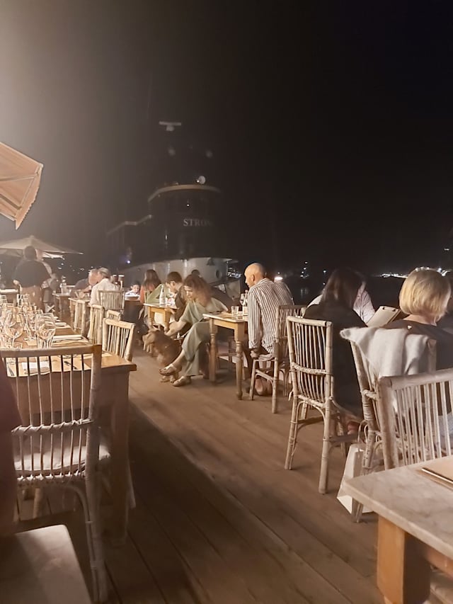 6/10Location is great, food unfortunately average. Multiple bookings on the evening so no relaxed enjoyment. Be aware of shipyard shiftservice.