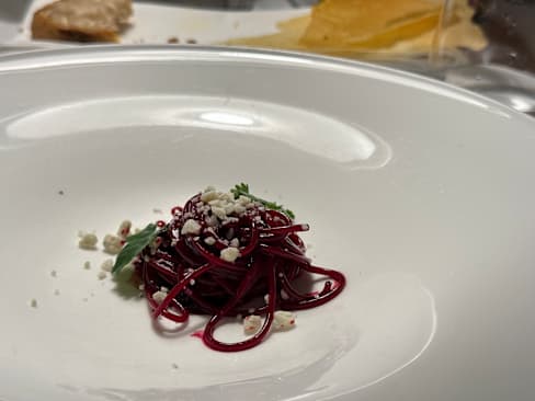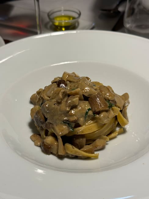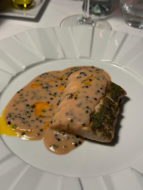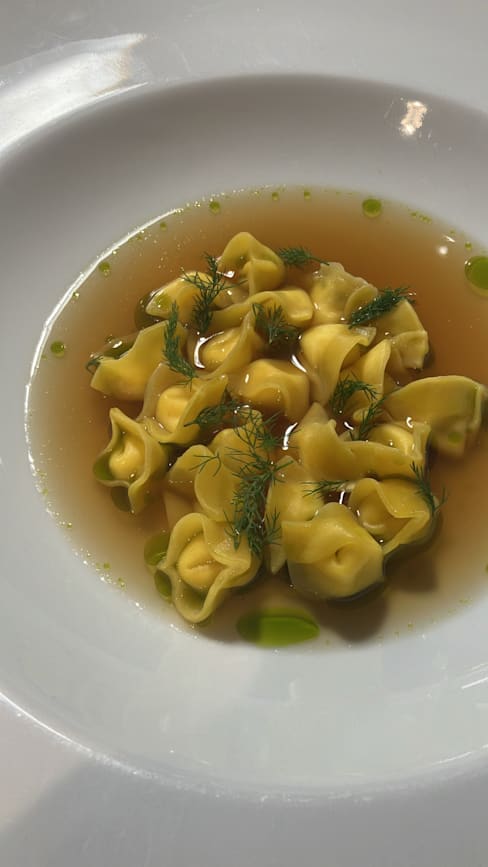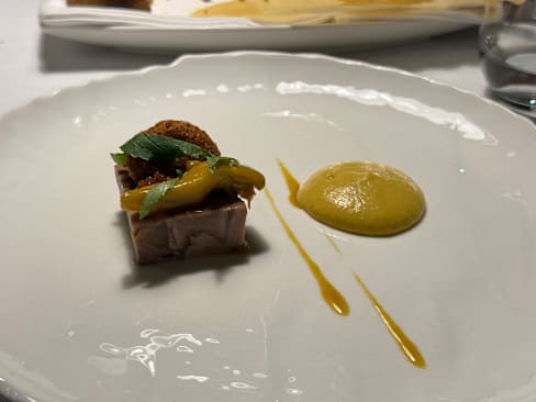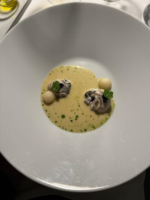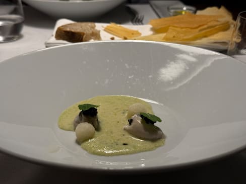 7.5/10Apps and pasta were classic and delicious. Oysters were beautiful and out of the shell. Eggplant was superb. Tortellini in brodo was classic. Pasta with fish crudo was a little strange but it worked. Sheep loin was well cooked but too many flavors competing. Pigeon had the same issues. Lots of North African ideas but just too much going on. We passed on desserts but petit fours were classic and lovely.