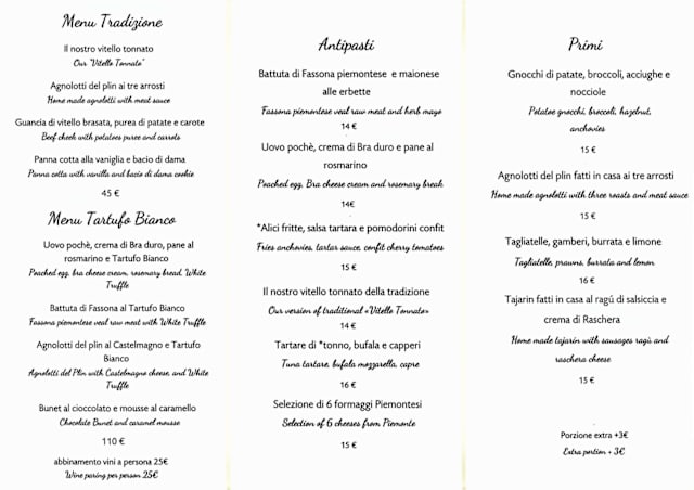 10/10+1Really, really…you should go here when in Alba! Fantastic food… creatively, prepared with local ingredients and attention to detail. Truly delicious. Our server was knowledgeable and attentive, but not overpowering in her presence. The prices were very reasonable for the quality of the food. I can highly recommend this place!!!