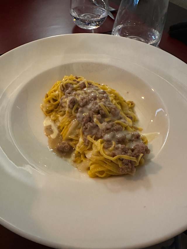 - Tajarin fatti in casa al ragú di salsiccia e crema di raschera