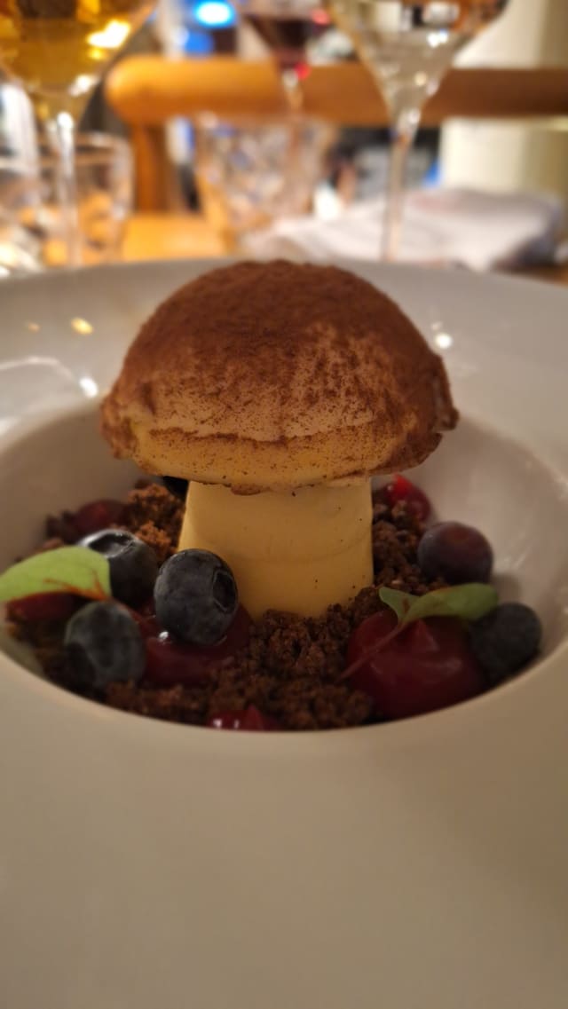 Kokos pannacotta, verbrande witte chocolate, mango en passievrucht