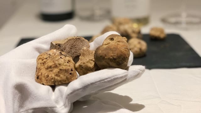 Yes, Momenti Italian Food & Wine has been identified as having local food on the menu.