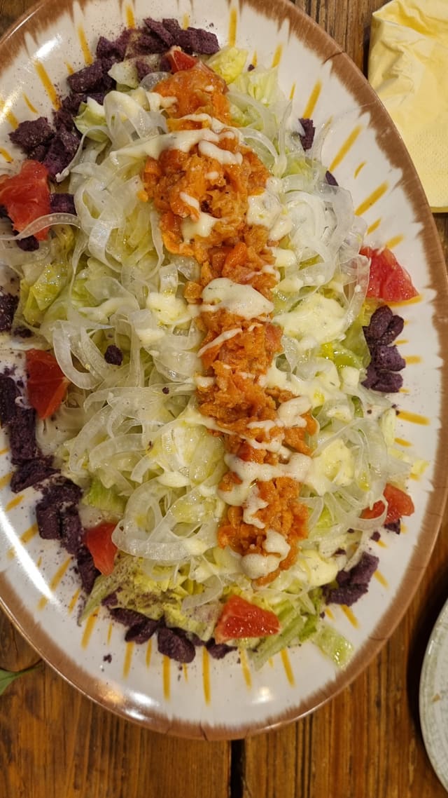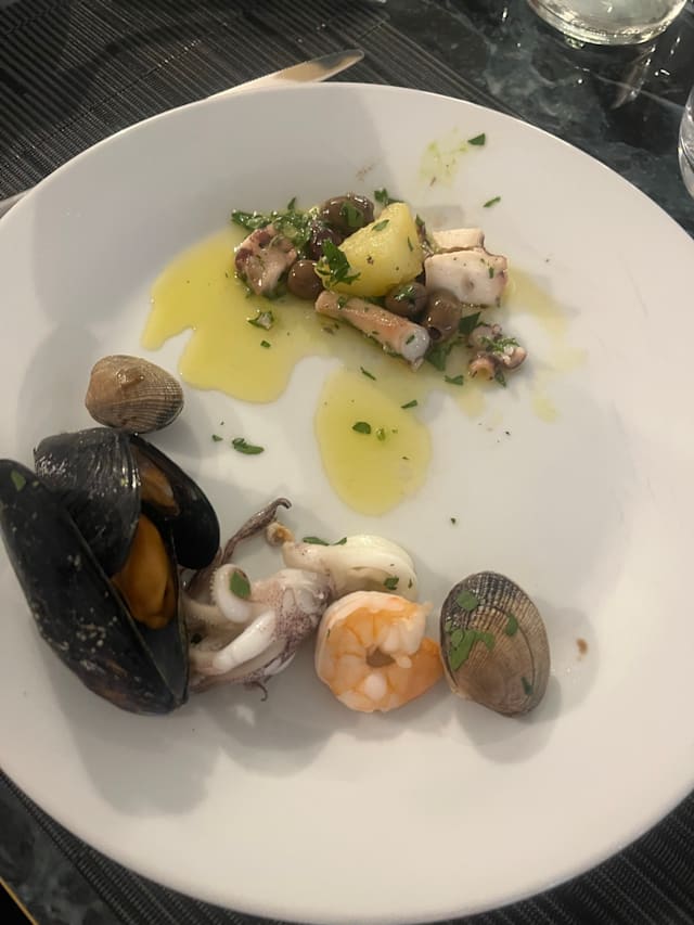 2.5/10Food prepared in 5 minutes with products coming right from the supermarket. Menu of 10 items out of which 5 were missing that day. Service is none. Salads coming with no dressing, you need to ask for olive oil. Pizza from half-cooked (frozen) cheap bread, some ingredients were cold like just taking out from the fridge. Mozzarella smelling old just a day ahead before going to trash. It's not a restaurant, it's a meeting place for frieds coming to drink a beer after a football game. Possibly they have raised the note of this fast food. We paid 40 EUR for 2 salads and 1 half pizza, applying the offered 50% on food. The wine was 8 eur/glass. Not a value for money, definitely.