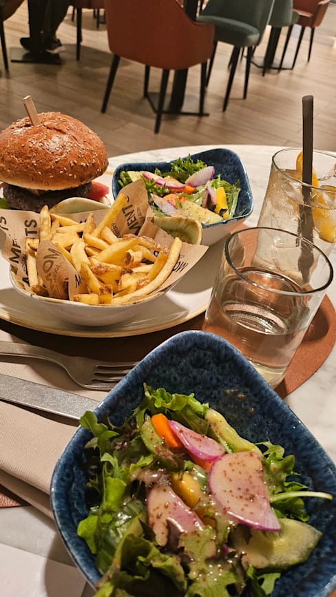 8.5/10First time visiting this new place. Interesting concept of space organization: the restaurant actually occupies the entire hotel lobby. Service is fast and pleasant. I thought the menu was not very extensive. The Swiss beef steak was good, as was the sandre dish.