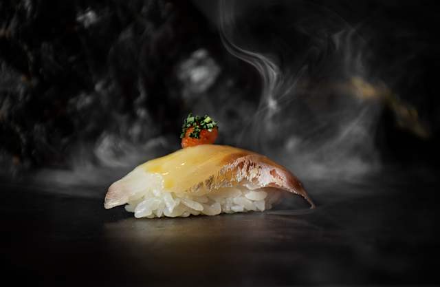 - Nigiri de salmón noruego curado en arroz fermentado “koji” (1p)