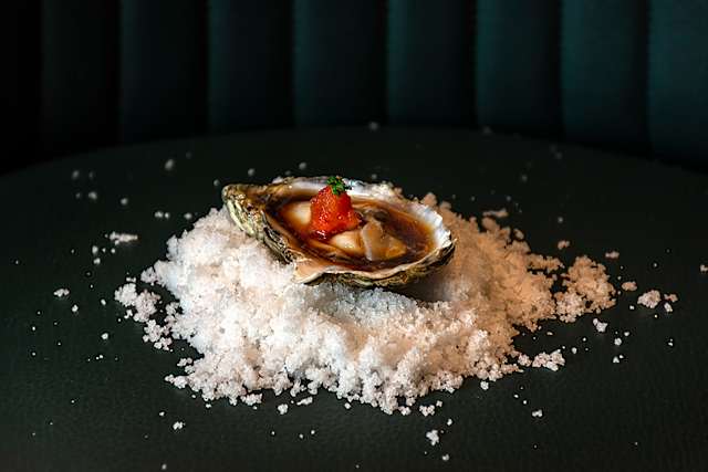 - Huevo con yema, caviar de salmón marinado y salsa kimizu