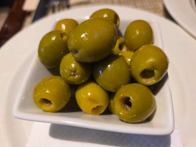 - Tomate, mozzarella, jamón dulce, champiñones, salami, cuvas verdes