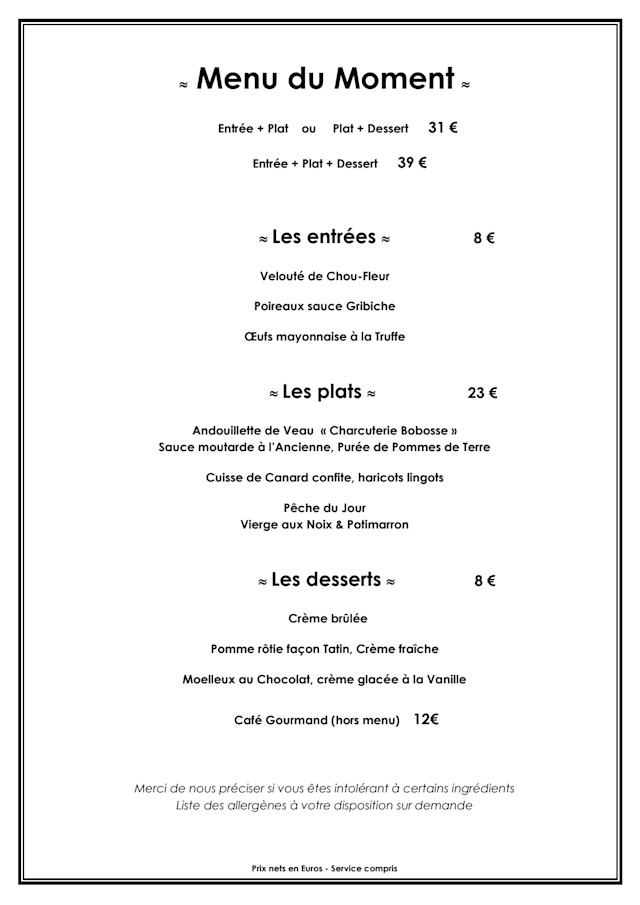 10/10The best Bistrot in Boulogne-Billancourt. French Cuisine, local customers, excellent service and reasonable price.