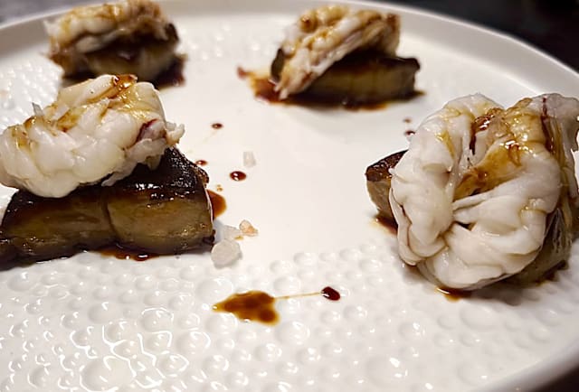 - Foie gras e gamberi con riduzione di sauternes