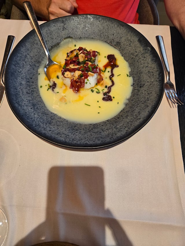 5/10The food was nice, but portions scrimped in places - 2 prawns in a prawn paella! What spoiled the evening was the service. At least 10 mins before the first and last starter was served. The staff were not sure what mains they were bringing to the table. One dish not brought out. No knowledge of the wine list, one drink not delivered. At the price point the restaurant aspires to, they shouldn’t be training people on the job.
